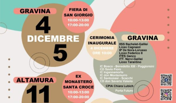 Generale, In primo piano, Slide news 05/12/2025 OrientaQui Si è appena conclusa la seconda edizione di OrientaQui, il Salone dell’Orientamento che riunisce tutte le scuole secondarie di secondo grado di Gravina e Altamura. … Leggi di più