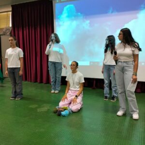 Momenti artistici hanno impreziosito il dialogo con l’autrice, un video racconto, uno scrigno dono con le parole seme per la rinascita, una esecuzione magistrale del gruppo del laboratorio di musica di insieme per archi del liceo musicale, e una performance teatrale di grande intensità.