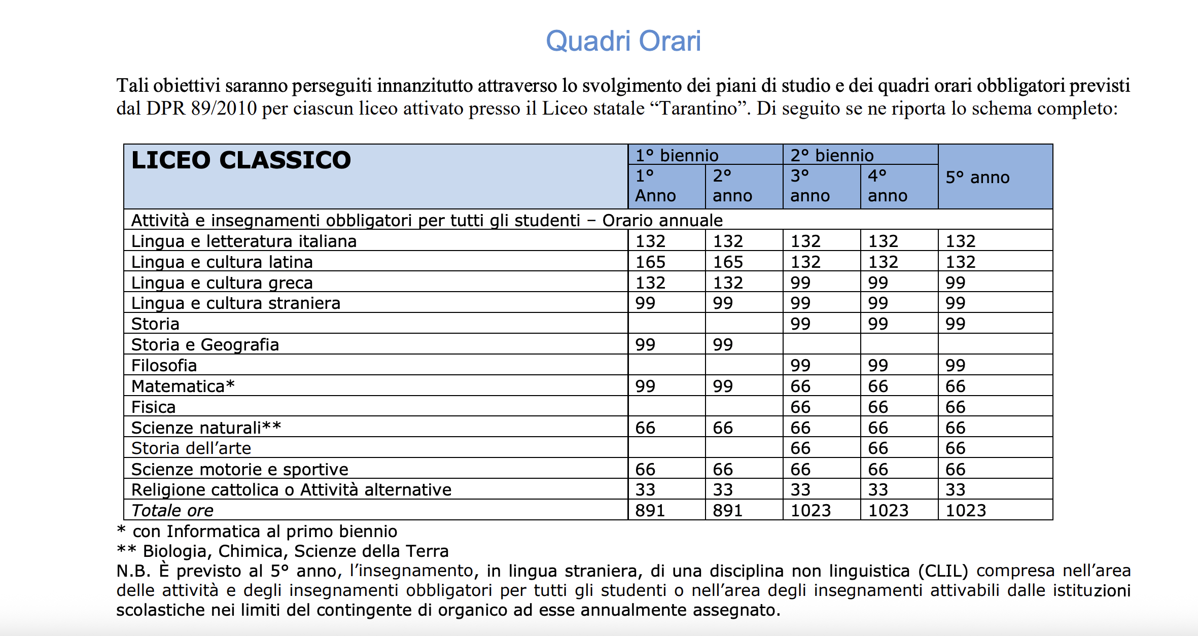 QuadrI orari per liceo LICEO CLASSICO LICEO LINGUISTICO LICEO MUSICALE LICEO SCIENTIFICO LICEO SCIENTIFICO - OPZ. SCIENZE APPLICATE (OSA)