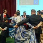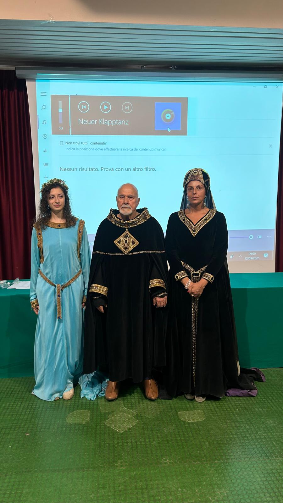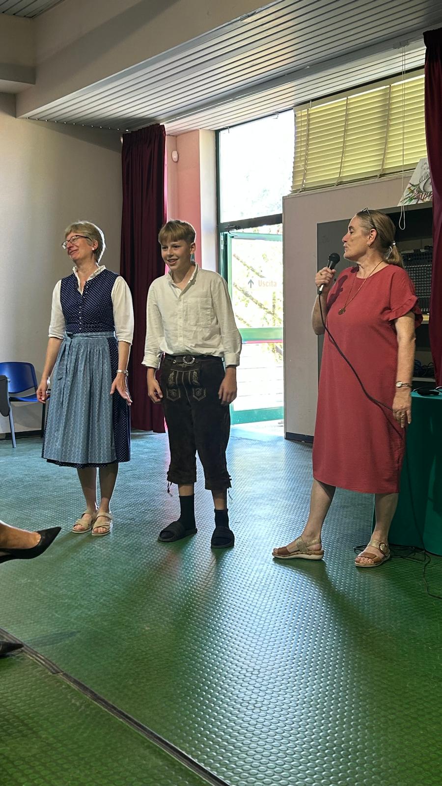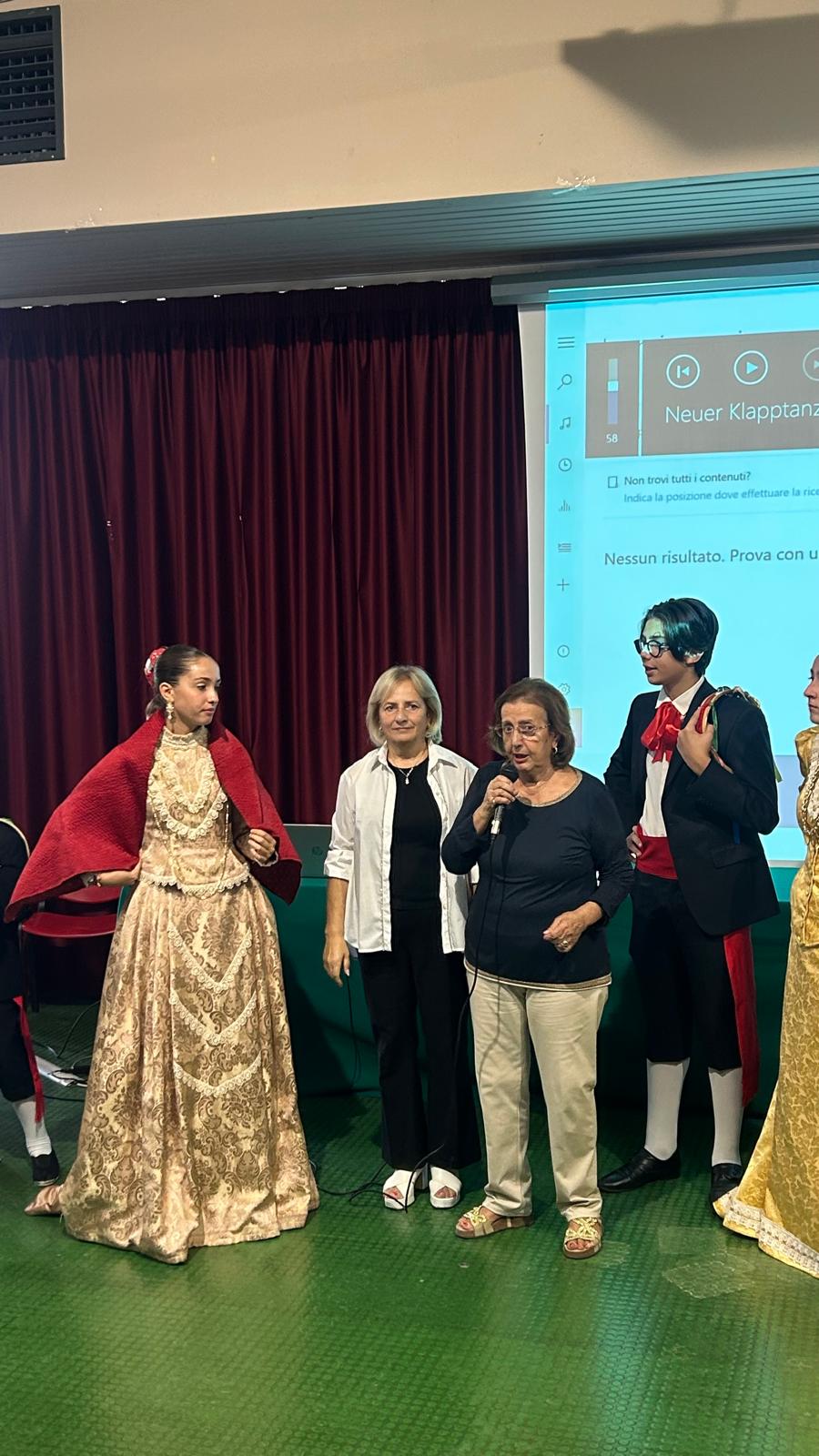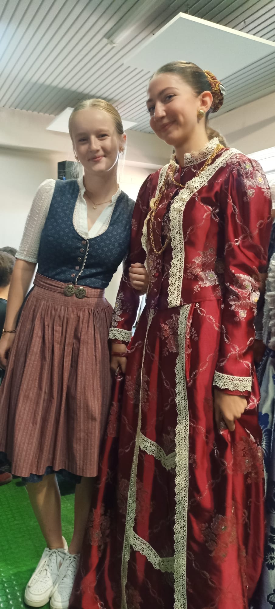Bel connubio tra studenti tedeschi e italiani nei balli popolari, con costumi tradizionali.